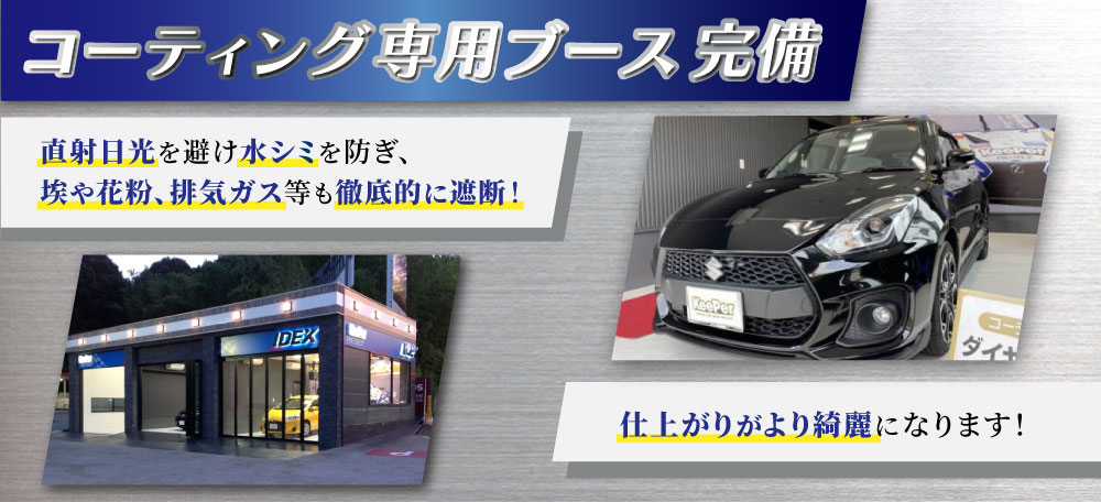また、細かい埃や花粉、廃棄ガス等を遮断するスペースで研磨やコーティングを施工することで、仕上がりがよりキレイになります!